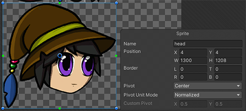 Example 2: Drag the corners of the SpriteRect to modify its dimensions and location, or enter the coordinates and dimensions in the Sprite panel.